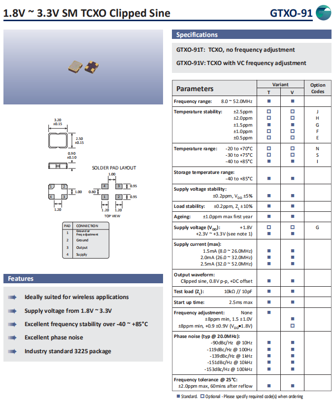 Golledge晶振,GTXO-91晶振,TCXO振蕩器.貼片式石英晶體振蕩器,低電壓啟動功率,并且有多種電壓供選擇,比如有1.8V,2.5V,3.3V,3.8V,5V等,產(chǎn)品被廣泛應用于,平板筆記本,衛(wèi)星系統(tǒng),光纖通道,千兆以太網(wǎng),串行ATA,串行連接SCSI,PCI-EXPress的SDH / SONET發(fā)射基站等領域.符合RoHS/無鉛..